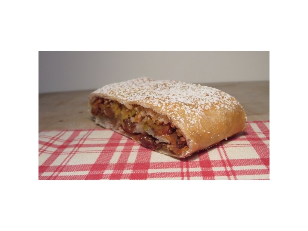 Složení: jablka, pitná voda, slunečnicový olej, vejce, cukr, bezlepkový pšeničný škrob (deproteinovaný), rýžová mouka, pohanková mouka, bramborové vločky, pekařské droždí, rozinky, zahušťovadla (xanthan, guma tara, hydroxypropylmethylcelulóza)), skořice, jedlá sůl