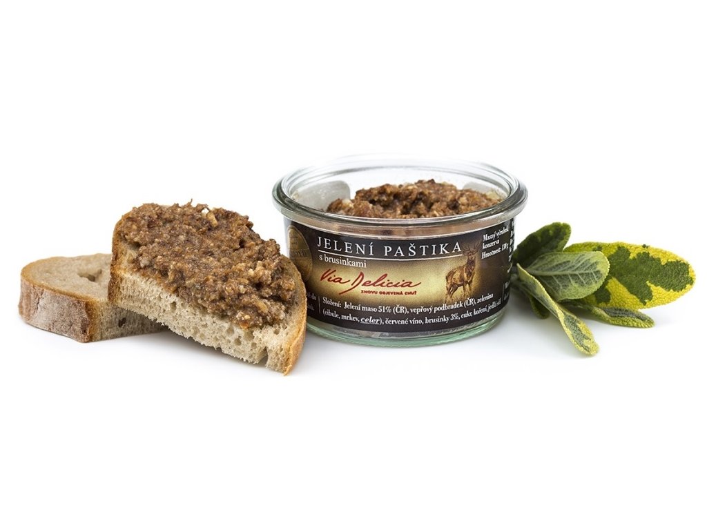 Tato chuťově výrazná paštika z naloženého jeleního masa a brusinek je skutečnou lahůdkou pro znalce a milovníky zvěřinových specialit.