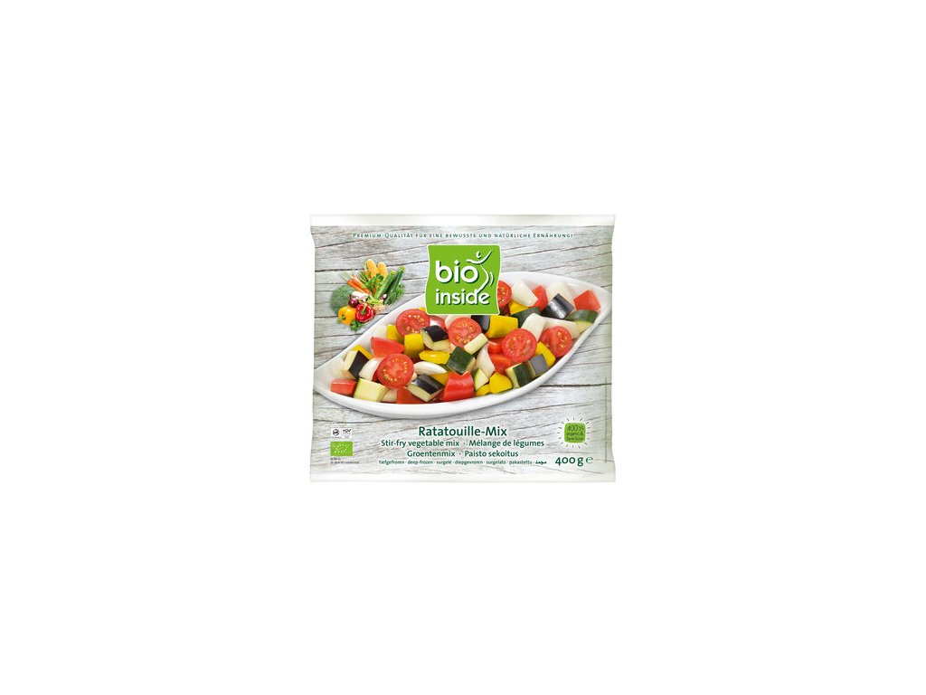 Složení: koktejlová rajčata, lilek (antioxidant: kyselina citrónová), cuketa, paprika žlutá/ zelená - vše z ekologické produkce