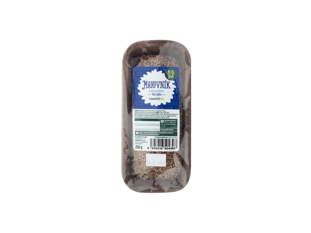 Velmi chutný makovník obohacený o amarant z produkce naší pekárny specializované na bezlepkový provoz. Vhodný pro bezlepkovou dietu. Ideální k snídani nebo jako snídaně, moučník nebo rychlé pohoštění pro návštěvu. Neobsahuje laktózu. Chutné rozšíření jídelníčku celiaků.